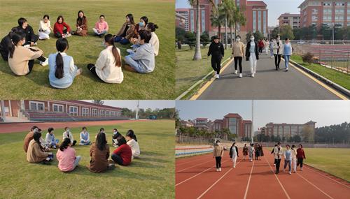 主題活動(dòng)包含繞校健步行活動(dòng)及操場(chǎng)趣味座談會(huì),女職工們精神飽滿、積極參與,一陣陣歡聲笑語(yǔ)在美麗的校園操場(chǎng)上響起。大家促膝圍坐,說一說自己的美好理想,談一談自己的奮斗目標(biāo),在愉快輕松的環(huán)境下分享著自己在工作與生活中的心得體會(huì)、人生感悟。