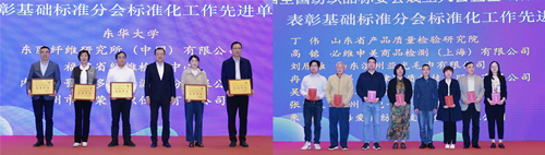 會議表彰了2022年度基礎(chǔ)標準分會標準化工作先進單位和個人,同時為第五屆全國紡織品標委會委員和觀察員、基礎(chǔ)標準分會增補觀察員頒發(fā)證書。