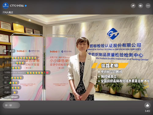截至2022年,通用技術(shù)中紡標(biāo)已成功舉辦7屆小使者活動(dòng),輻射全國5大區(qū)域,報(bào)名人員近5000人,線下實(shí)驗(yàn)室參觀人員近2000人,線上網(wǎng)友參與人數(shù)近1800人,累計(jì)發(fā)放綠色小使者證書1000余份,參與合作媒體近10家,媒體報(bào)道近百篇(含轉(zhuǎn)載)。以最近一屆視頻號直播為例,觀看人數(shù)901人,觀看次數(shù)1749次,點(diǎn)贊次數(shù)41253次,評論次數(shù)650次,分享次數(shù)329次。