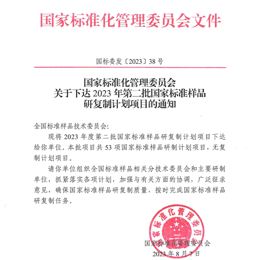 2023年8月7日,國(guó)家標(biāo)準(zhǔn)化管理委員會(huì)印發(fā)《關(guān)于下達(dá)2023年第二批國(guó)家標(biāo)準(zhǔn)樣品研復(fù)制計(jì)劃項(xiàng)目的通知》(國(guó)標(biāo)委發(fā)[2023]38號(hào)),下達(dá)2023年度第二批國(guó)家標(biāo)準(zhǔn)樣品研復(fù)制計(jì)劃項(xiàng)目共53項(xiàng),正式立項(xiàng)的6項(xiàng)紡織標(biāo)準(zhǔn)樣品計(jì)劃均由通用技術(shù)中紡院中紡標(biāo)檢驗(yàn)認(rèn)證股份有限公司(以下簡(jiǎn)稱“中紡標(biāo)”)承擔(dān)研制。