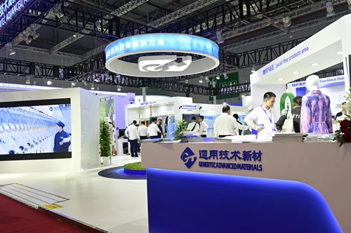 中國紡織工業(yè)聯(lián)合會原會長王天凱,黨委副書記陳偉康,副會長李陵申、端小平,原副會長孫淮濱等領導蒞臨展團,通用技術集團副總經(jīng)理、黨組成員賈大風對通用技術集團情況作介紹,通用技術新材董事長、黨委書記莊小雄介紹了此次展團的整體情況以及綠纖、特纖、高纖三大產(chǎn)品線的新品及拳頭產(chǎn)品。