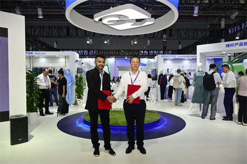 通用技術新材展團現(xiàn)場國內外客商絡繹不絕,綠纖、特纖等相關產(chǎn)品尤其受到關注,通用技術新材展團與幾十家客戶達成了合作意向。中紡綠纖與巴基斯坦公司SARA TRADE INTERNATIONAL 簽訂了戰(zhàn)略合作協(xié)議。