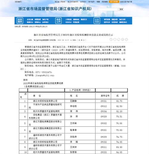 喜訊丨中紡標(biāo)浙江公司在2023年浙江省檢驗(yàn)檢測(cè)職業(yè)技能競(jìng)賽中喜獲佳績(jī)