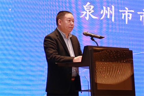 泉州市市場監(jiān)督管理局調(diào)研員劉華致辭。劉華介紹了泉州的紡織服裝品牌,注重品牌引領(lǐng)產(chǎn)業(yè)升級(jí),希望紡織領(lǐng)域?qū)<抑С秩菁徔椥袠I(yè)發(fā)展,助力泉州紡織業(yè)高端化、智能化、綠色化、融合化發(fā)展。