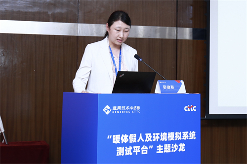 中紡標(biāo)研發(fā)部高級工程師吳健春在題為《暖體假人及環(huán)境模擬系統(tǒng)測試平臺介紹》的報(bào)告中,圍繞暖體假人測試系統(tǒng)的原理、組成部分及出汗、溫度、行走和呼吸控制等方面展開細(xì)致講解,分享其精確模擬人體的熱濕傳遞過程。通過將暖體假人置于環(huán)境倉中,可進(jìn)行模擬低溫、高溫、濕熱、降雨、降雪等單一或組合環(huán)境下的試驗(yàn)。她同時(shí)重點(diǎn)介紹了該系統(tǒng)相關(guān)適用標(biāo)準(zhǔn),確保測試流程的科學(xué)性、系統(tǒng)性和公正性。