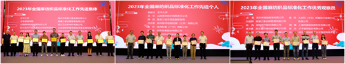 會議表彰了2023年度全國麻紡織品標準化技術委員會標準化工作的先進單位和個人,同時為新增補的觀察員頒發(fā)了證書。