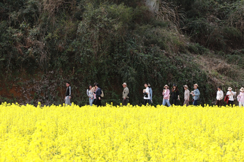 伴著和煦的春風(fēng),滿載著職工的大巴車從公司出發(fā)。一路上大家歡聲笑語(yǔ)、其樂(lè)融融,大概一個(gè)半小時(shí)車程后,大家到達(dá)了此次活動(dòng)的第一站——陳蔡千畝油菜花田。景區(qū)內(nèi)盛開(kāi)的油菜花競(jìng)相爭(zhēng)艷,散發(fā)出濃濃春意。大家卸下平日工作中的緊張和疲憊,漫步于油菜花田,紛紛拿出相機(jī)拍照留念,盡情享受春光里的無(wú)限美好。