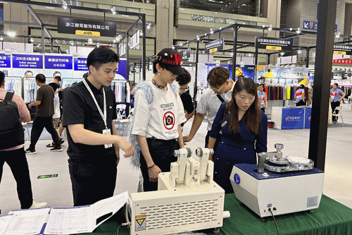 本次展會(huì)深圳中紡標(biāo)攜手深圳標(biāo)準(zhǔn)認(rèn)證聯(lián)盟共同參展。在展位上圍繞“標(biāo)準(zhǔn)引領(lǐng)服裝高質(zhì)量發(fā)展”主題,給眾多到來的客戶講解了深圳標(biāo)準(zhǔn)認(rèn)證政策,以及推介優(yōu)質(zhì)的檢測(cè)認(rèn)證服務(wù),向客戶傳遞高標(biāo)準(zhǔn)引領(lǐng)、高質(zhì)量發(fā)展的理念,同時(shí)針對(duì)校服及定制服的主要風(fēng)險(xiǎn)項(xiàng)目進(jìn)行現(xiàn)場(chǎng)測(cè)試展示,讓客戶更加直觀了解到其測(cè)試原理和過程。