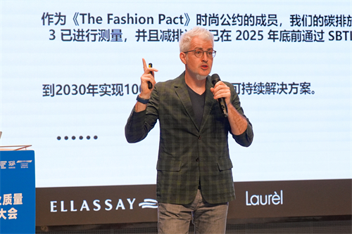 歌力思集團(tuán)首席可持續(xù)時(shí)尚官Dominique Simard司馬德明在《可持續(xù)發(fā)展與ESG:高端時(shí)裝品牌集團(tuán)的實(shí)踐與啟示》的報(bào)告中,分別從減少碳排放、倡導(dǎo)循環(huán)經(jīng)濟(jì)、保護(hù)生物多樣性三大可持續(xù)發(fā)展議題,向參會(huì)嘉賓展示企業(yè)綠色發(fā)展成果。