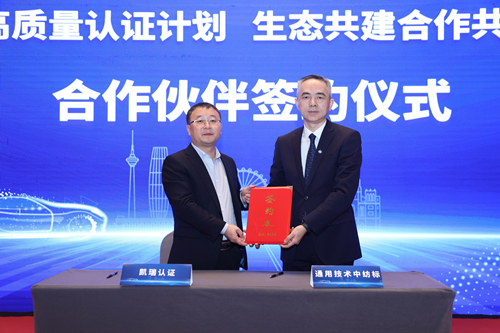 12月5日,在“認證賦能發(fā)展·質(zhì)量護航出海”車輛認證技術(shù)交流會上,中紡標總經(jīng)理李斌與中汽院凱瑞檢測認證(重慶)有限公司(中國汽研全資子公司)總經(jīng)理夏國強共同出席了“高質(zhì)量認證計劃 生態(tài)共建合作共贏”合作伙伴簽約儀式,雙方將聯(lián)合開展國內(nèi)外主機廠自愿性認證項目工作,通過高質(zhì)量的認證服務(wù),推動汽車行業(yè)向更加安全、環(huán)保、智能的方向發(fā)展。