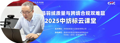 7月15日,由通用技術(shù)中紡標檢驗認證股份有限公司(以下簡稱“中紡標”)主辦,國家紡織制品質(zhì)量檢驗檢測中心、中紡標(深圳)檢測有限公司協(xié)辦的“破局羽絨質(zhì)量與跨境合規(guī)雙難題—2025中紡標云課堂”線上培訓(xùn)活動成功舉辦?;顒游私?00家紡織服裝企業(yè)、電商平臺及行業(yè)協(xié)會代表參與,旨在通過標準化知識輸出與實戰(zhàn)案例解析,共同探討質(zhì)量與合規(guī)領(lǐng)域的創(chuàng)新解決方案。